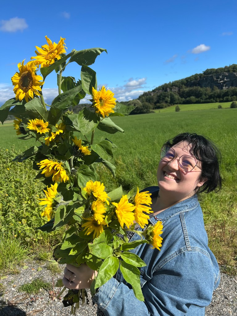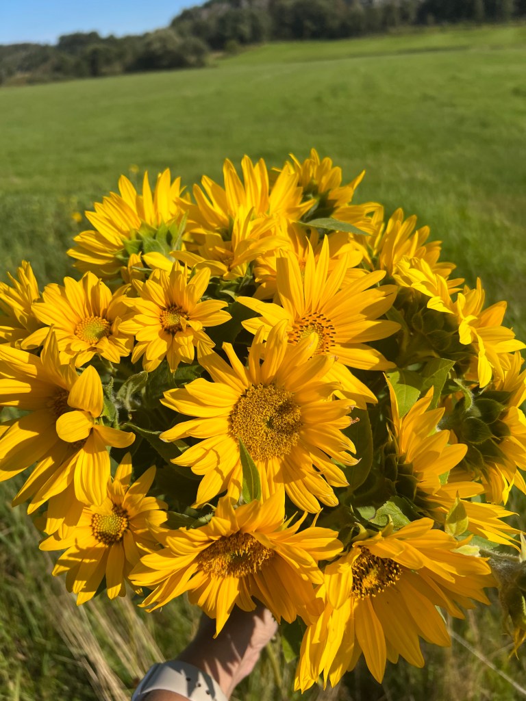 I love sunflowers! And so does my beautiful sunshine of a daughter-in-law. She is joy and energy, laughter and fun, bringing so much happiness into our family. Very much a sunflower herself!! We went picking sunflowers for my 50th birthday party summer of 2023. A precious memory indeed, as we wandered through the vibrant field, surrounded by golden blooms. I take photos of sunflowers where ever I find them!! This selection is from various trips as well as from my own kitchen table.