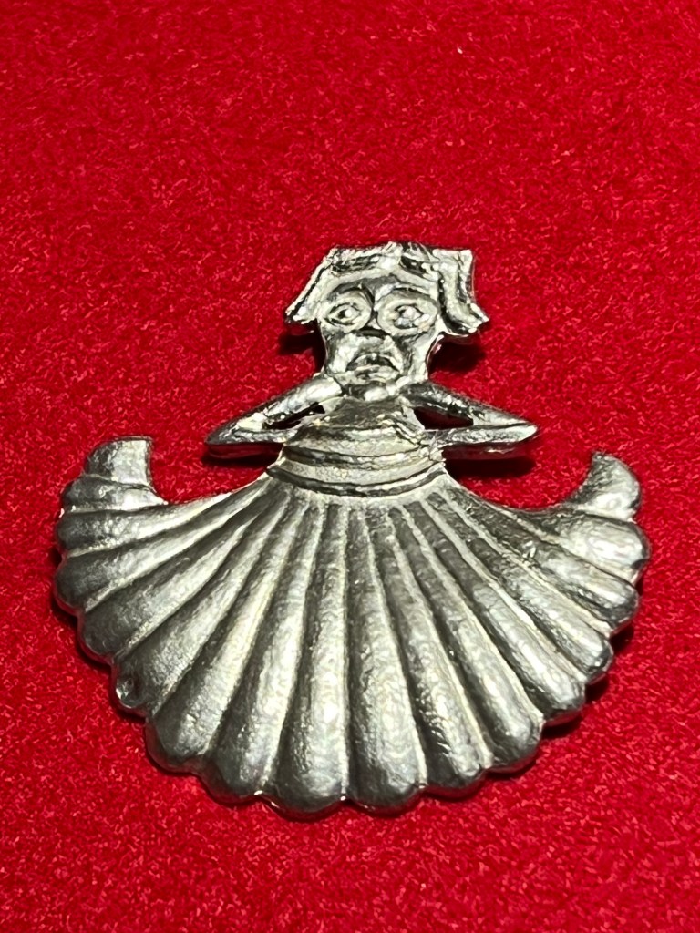 Bilden är ett pilgrimsmärke från Santiago de Compostela, där aposteln Jacob ligger begravd. Pilgrimens märke på den leden är snäckan, Pilgrimsmusslan. Från medeltiden och fram till idag har traditionen levt vidare, att pilgrimen på El Camino bär en snäcka. Märket finns på museet i Vadstena. Den andra bilden är från en pilgrimsvandring jag gick för några år sedan mot Varnhem.