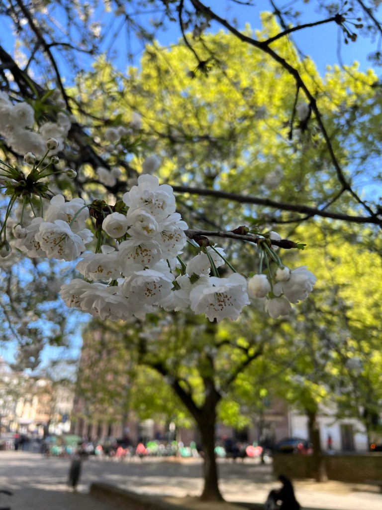 Visiting my son and his girlfriend in their hometown, Brussels, for four days is just a treat. First of all, being able to spend a few days off together with my grown-up children, my oldest daughter too, is just special. But also, meeting the spring with all that goes with it has been a mood booster. Temperatures far above 20 (feels like 30)!! is certainly good for both energy and a pale face. Ice cream, tulips and ducklings in the parks. Lots of spring flowers and fries, waffles, and chocolate. Even some turtles swimming in the pond and resting in the sun.
